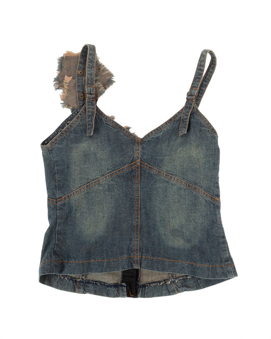 Sold outVendor:Plein SudDistressed Denim Floral Corset Top