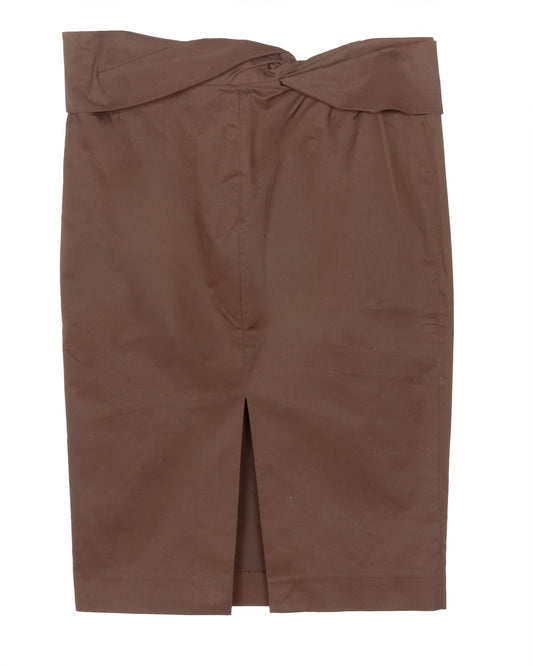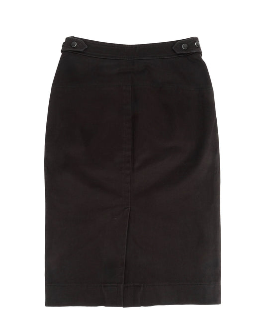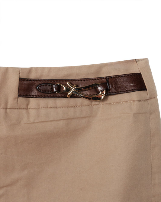 Tan Cotton Horsebit Buckle Pencil Skirt