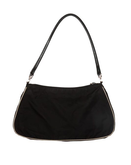 SS2000 Black Nylon Floral Appliqué Shoulder Bag