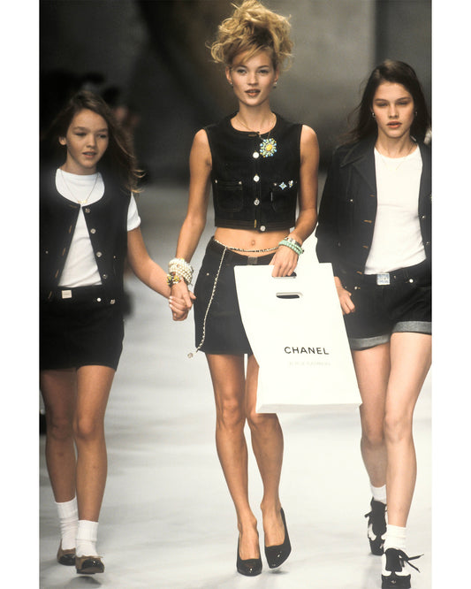 SS1996 Metal Logo Belt Denim Mini Skirt