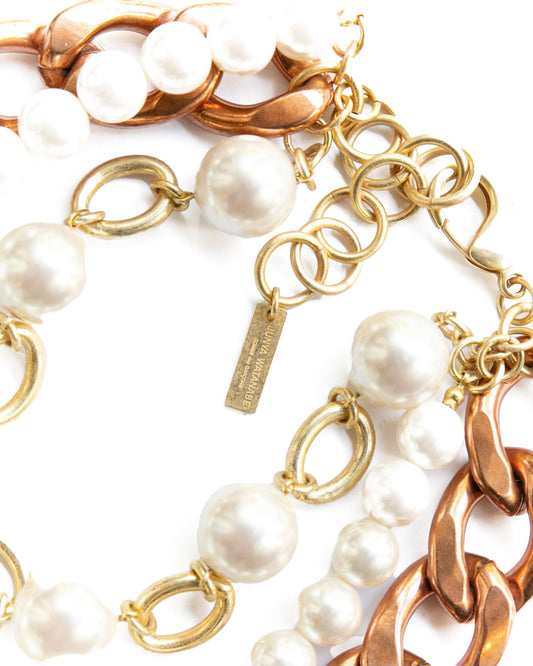 Faux Pearl and Chain Necklace