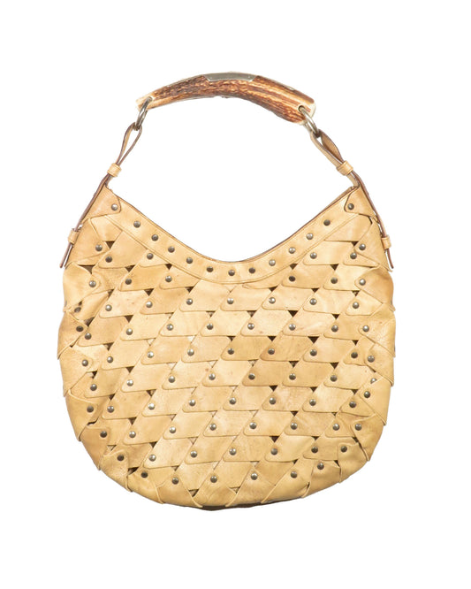 Brown Mombasa Leather Hobo Bag with Horn Handle