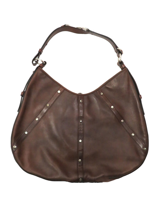 Brown Leather Studded Shoulder Bag