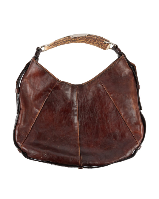 Brown Mombasa Leather Hobo Bag with Horn Handle